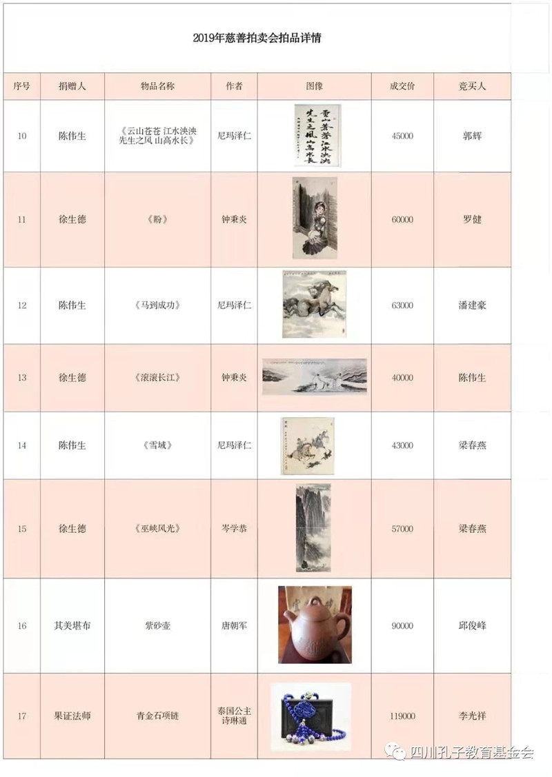 拍卖中各校友对自己心仪作品纷纷举牌,你争我夺,经过两个多小时的竞拍,共拍得202万余元爱心善款。拍卖结束后执行理事长陈伟生除拍卖外另外又捐款8万元,校友们对基金会这10年来的成绩表示高度认可并纷纷来到捐赠处献出自己的一片爱心,更有校友直接通过电话进行捐款,他们是唐超明捐款5万元,冯子林捐款4万元,郑静文捐款4万元,燕三红除拍卖外另外又捐款3万元,杨曦捐款2万元,王文军捐款2万元,邱莎捐款2万元,尹东除拍卖外另外又捐款1万元。本次活动基金会共收到233万元爱心捐款。