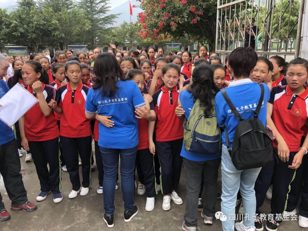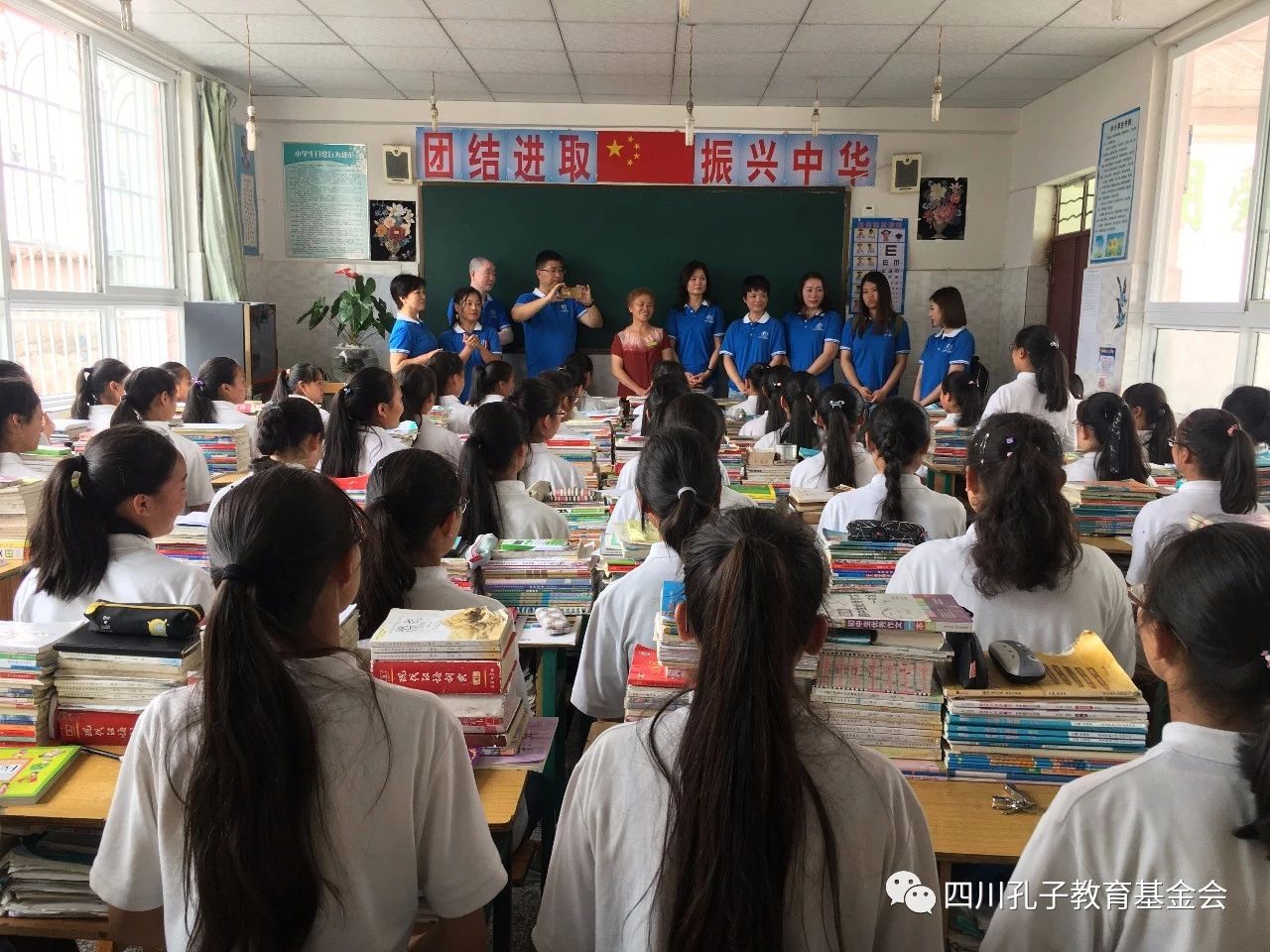 “与人以爱 传人以仁;一个梦 一群人 一起走” 。因为心中有着共同的信念,因为大爱无疆。6月11日上午9:00,在常务副理事长罗健女士、副理事长汤进先生的带领下,常务副秘书长李朝蓉、吴蓉、黄莉萍,副秘书长郑肃平、陈思春、徐靖婷,志愿者张若虹的参与下,四川孔子教育基金会同仁们此次一行九人在爱的指引下,再次走进西昌绿荫学校,与王校长相聚并受到1000多名师生的热烈欢迎。