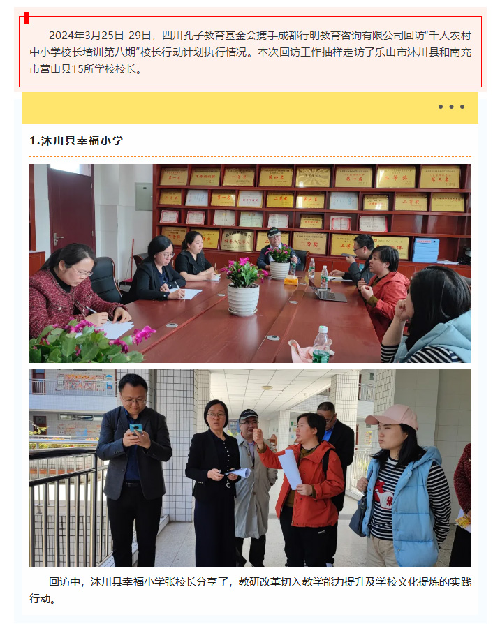 基金会开展“2023年千人农村中小学校长培训第八期”校长回访工作